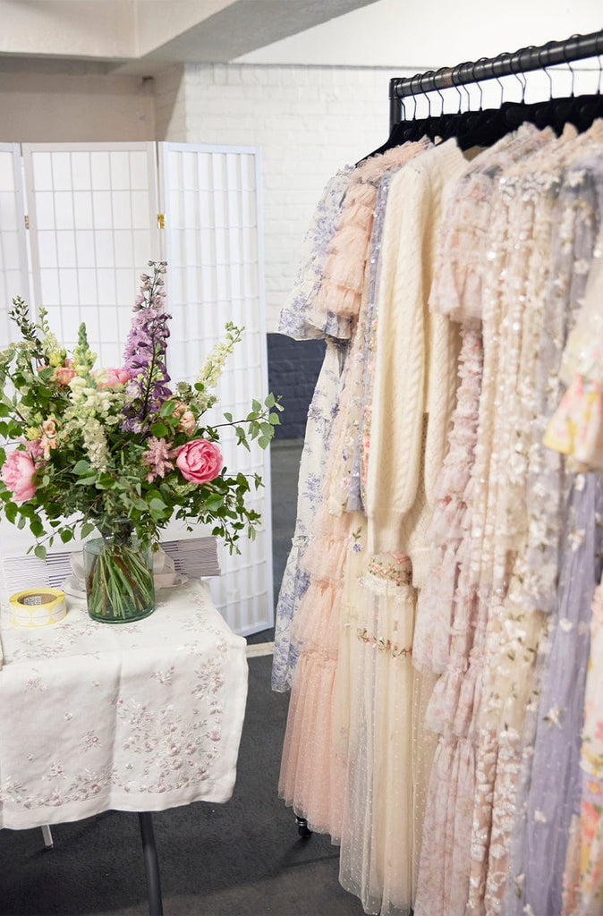 Hosted at iconic department store, Selfridges – their car park played the perfect back drop for a traditional British car boot sale, with brands selling items from their cars and decorated stalls. Needle & Thread were pleased to donate a bespoke edit of special pieces, alongside an impressive line-up of prestigious fashion and beauty brands. Curated by Founder & CEO Hannah Coffin, the edit included embellished gowns, luxe knitwear and cotton day dresses.