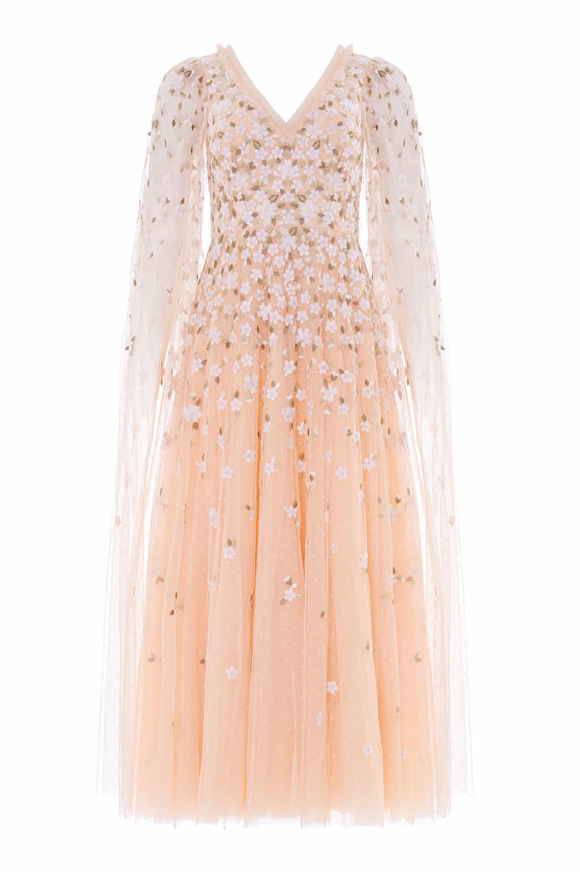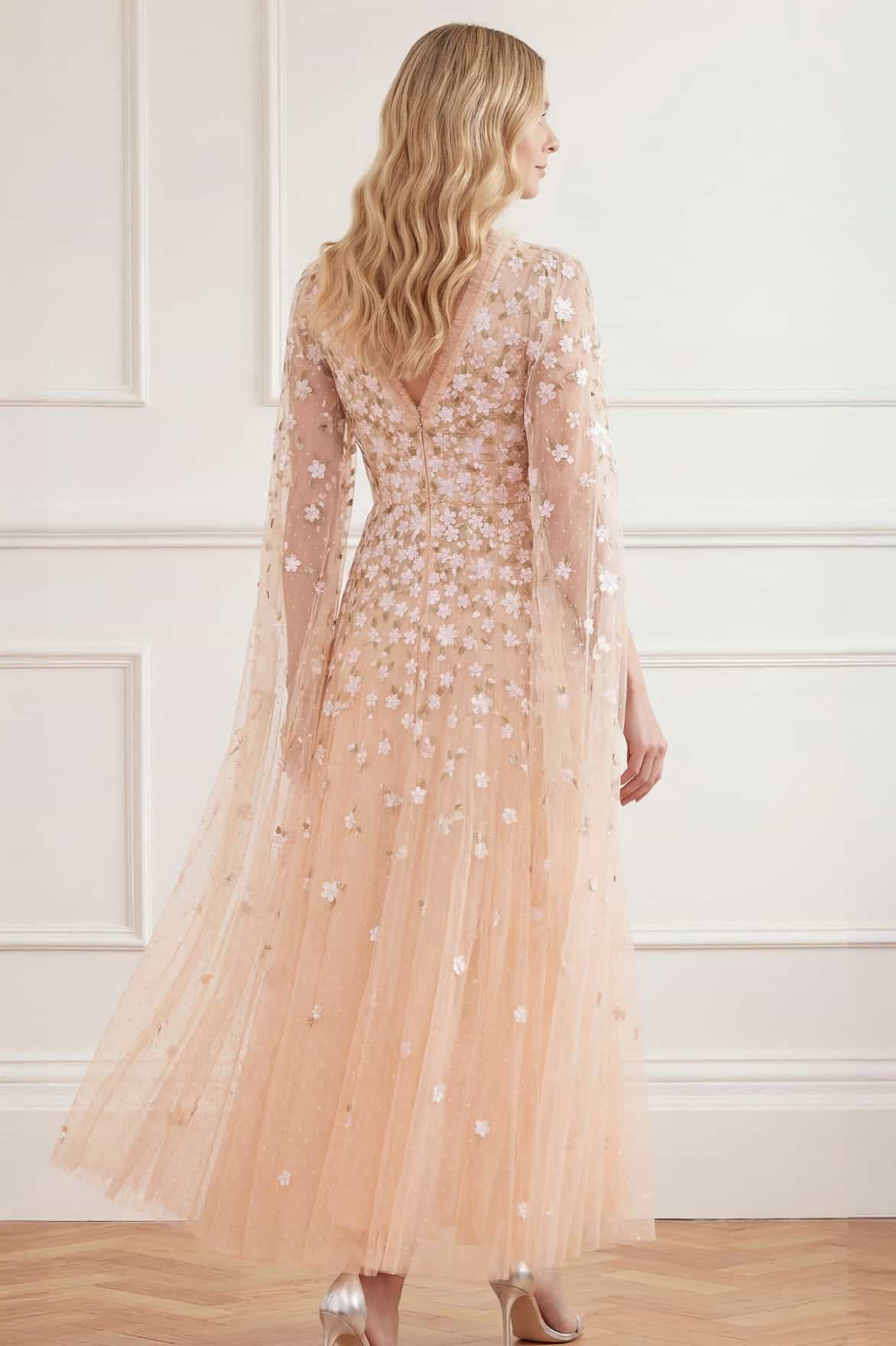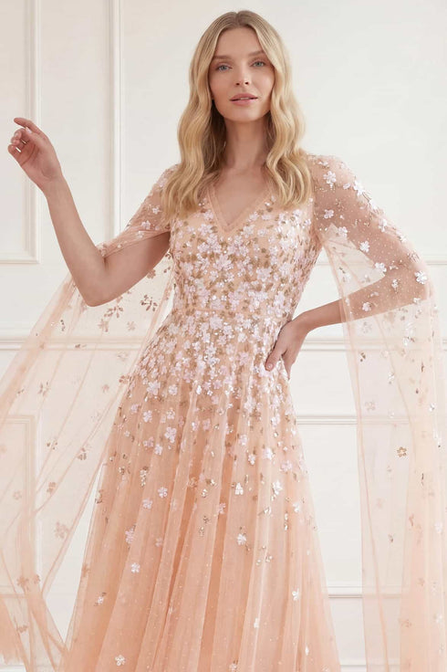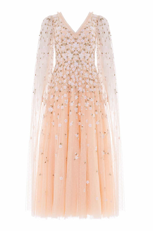 Camellia Ditsy Cape Sleeve Ankle Gown