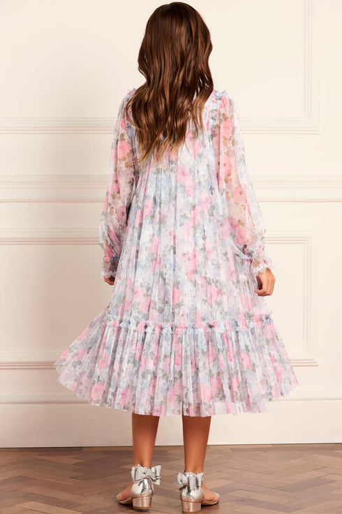 NEW SEASON. The Camille’s Garden Long Sleeve Kids Dress in Moonshine. Features the collection’s signature floral print. Crafted with a gathered waist and floaty sleeves, it’s a sweet, versatile piece for both family occasions and festive moments.
