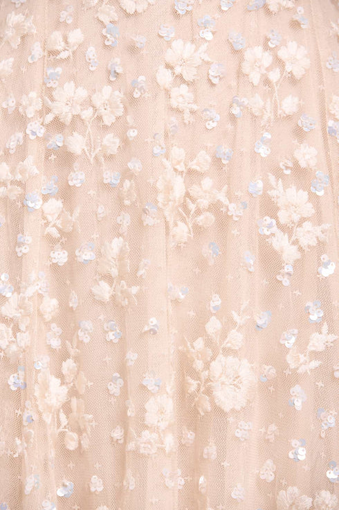 - 100% of the sequins used for this design are made from upcycled materials using self-generated plastic waste.