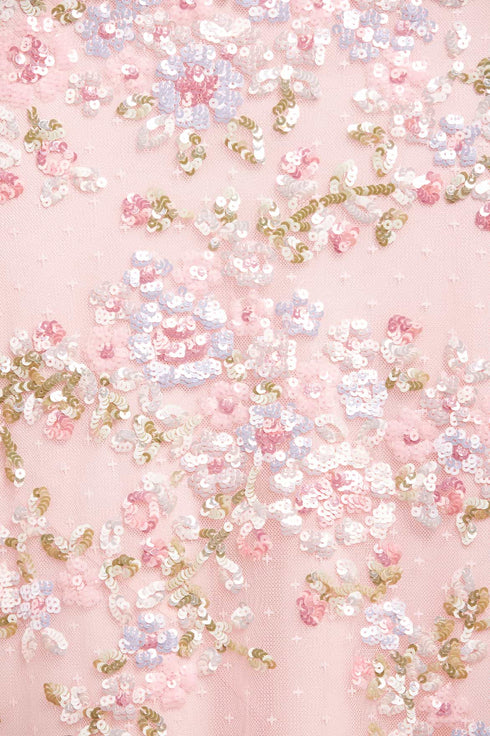 - 100% of the sequins used for this design are made from upcycled materials using self-generated plastic waste.