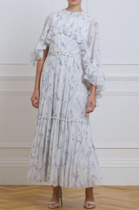 Ophelia Ditsy Harper Chiffon Cape Ankle Gown