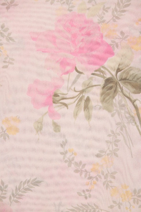 The Rose Draped One-Shoulder Ankle Gown in Moonshine/Pink features a romantic print inspired by antique hand-painted artwork with large rose blooms and trailing florals. Crafted from stretch power mesh, this elegant one-shoulder gown has soft ruching for a flattering silhouette, offering both comfort and style. The perfect choice for an upcoming holiday.