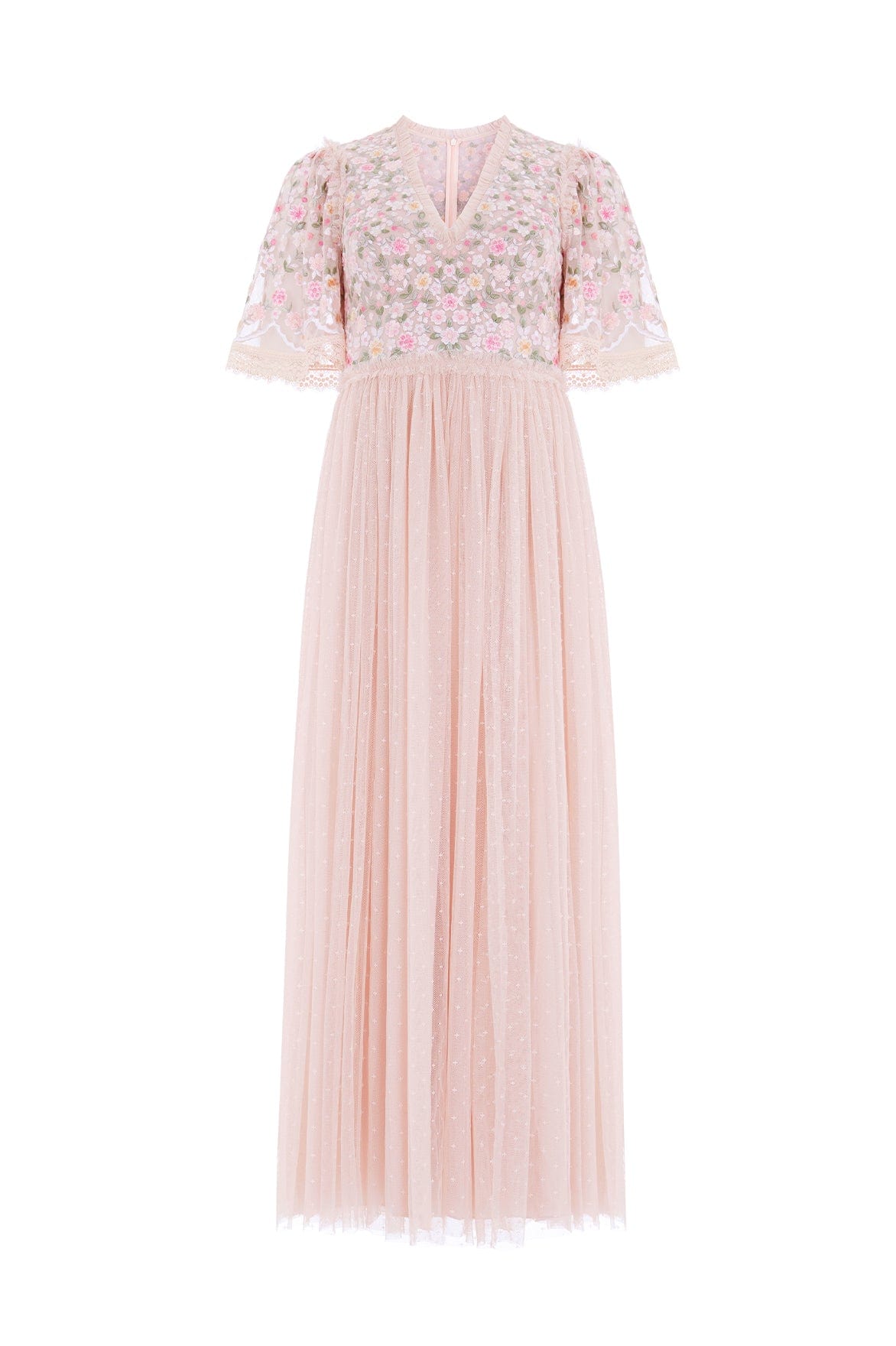 Rosie Lace Bodice Short Sleeve V-Neck Ankle Gown