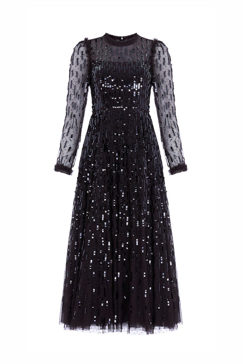 Sequin Dash Long Sleeve Gown