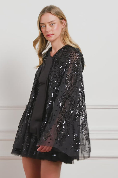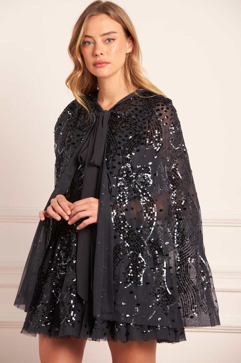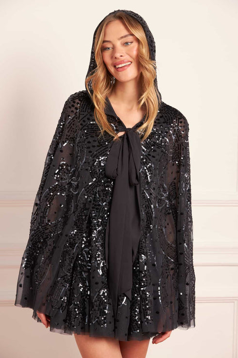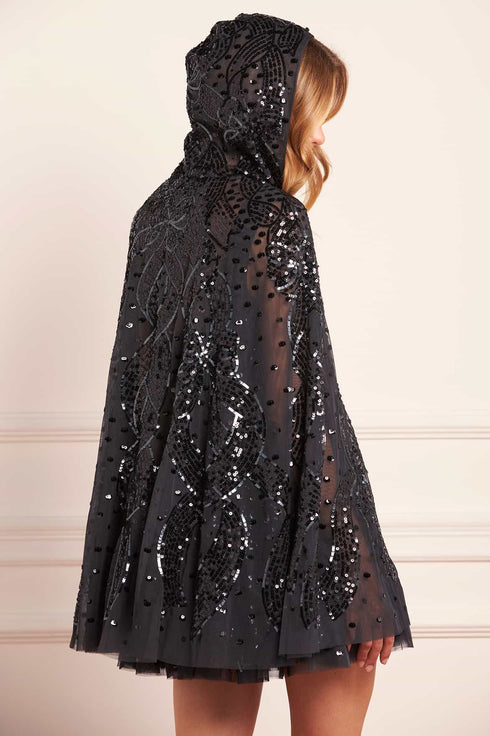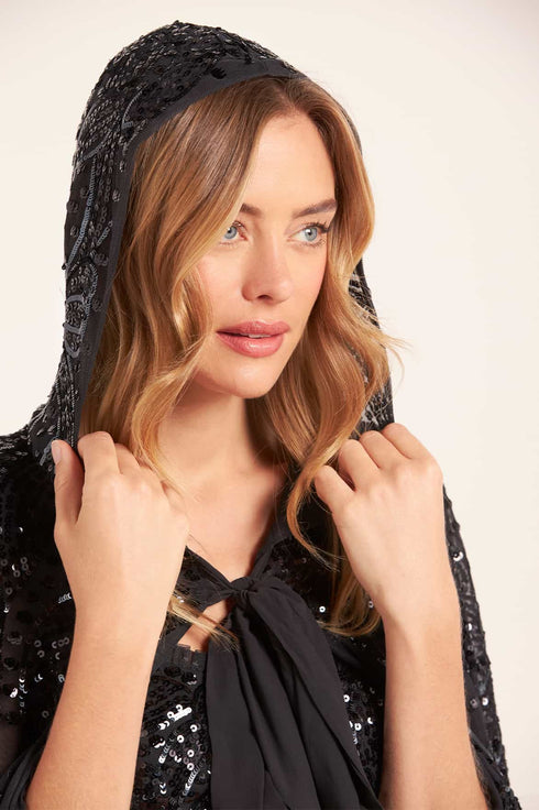 Sequin Ribbon Hooded Cape