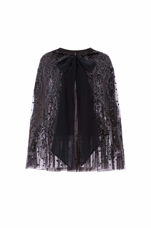 • Sequin Ribbon Hooded Cape
