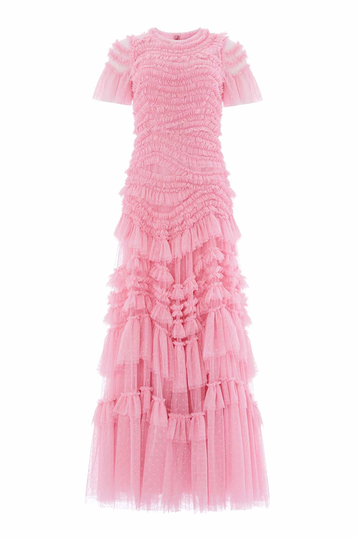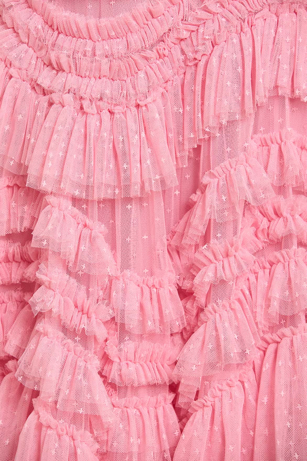 - Kisses tulle decorated with layers of tulle ruffles
